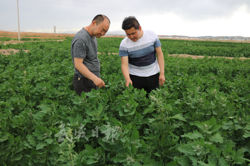 7月21日,天祝县松山镇包村干部察看藜麦长势。今年,该镇采取“企业+基地+农户”的方式,种植藜麦3.1万亩,力争到2020年种植面积达到10万亩。