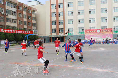 5月17日,运动员们正在进行足球比赛。当日,市足协、西凉天马足球俱乐部、武威十中联合举办“武威足协杯”校园足球联赛,旨在宣传推广科学、健康的足球健身发展理念,促进校园足球运动发展。